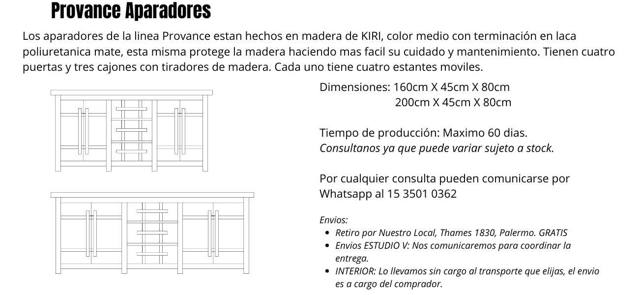 El aparador Provence, fabricado en madera de kiri, combina diseño artesanal y funcionalidad inspirada en la campiña francesa. Con cuatro puertas y tres cajones, ofrece gran capacidad de guardado con elegancia. Sus herrajes de madera aportan carácter único, ideal para comedores o livings con estilo cálido y europeo.