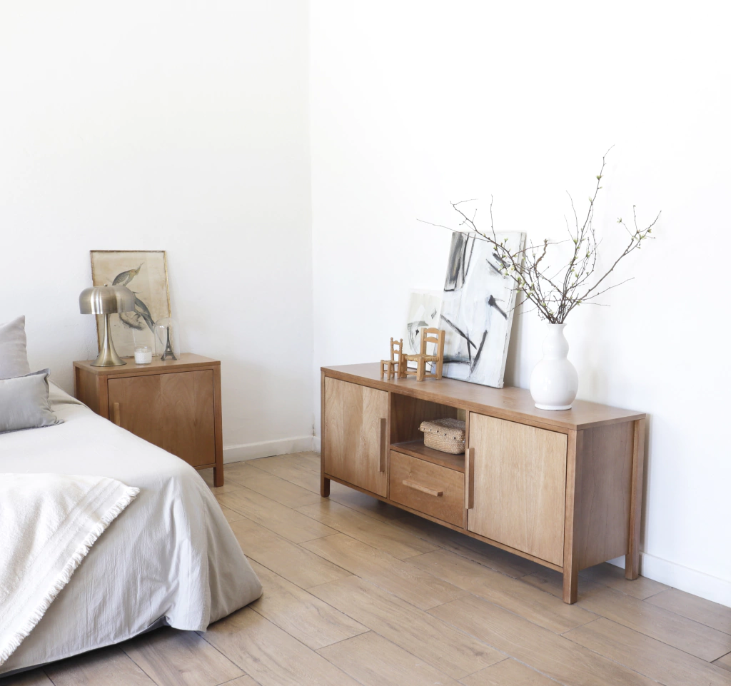 El aparador Provance chico es una pieza funcional y elegante, ideal para sumar espacio de guardado sin recargar el ambiente. Fabricado en madera de kiri, se destaca por su tono suave y vetas delicadas que aportan calidez natural. Su diseño simple y atemporal lo convierte en un mueble versátil que se adapta a distintos estilos de decoración.