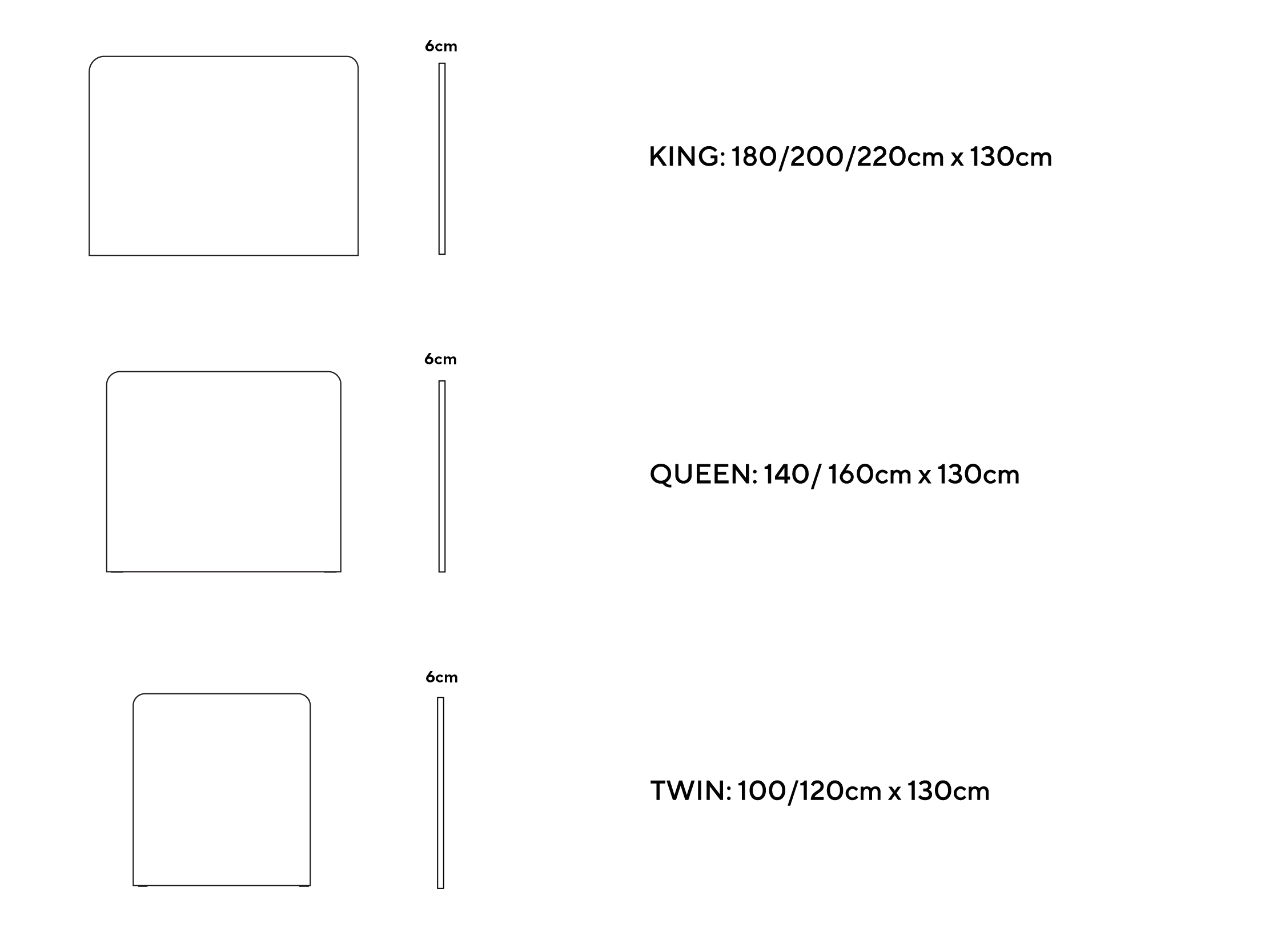 KING: 180cm/200cm/220cm x 130cm