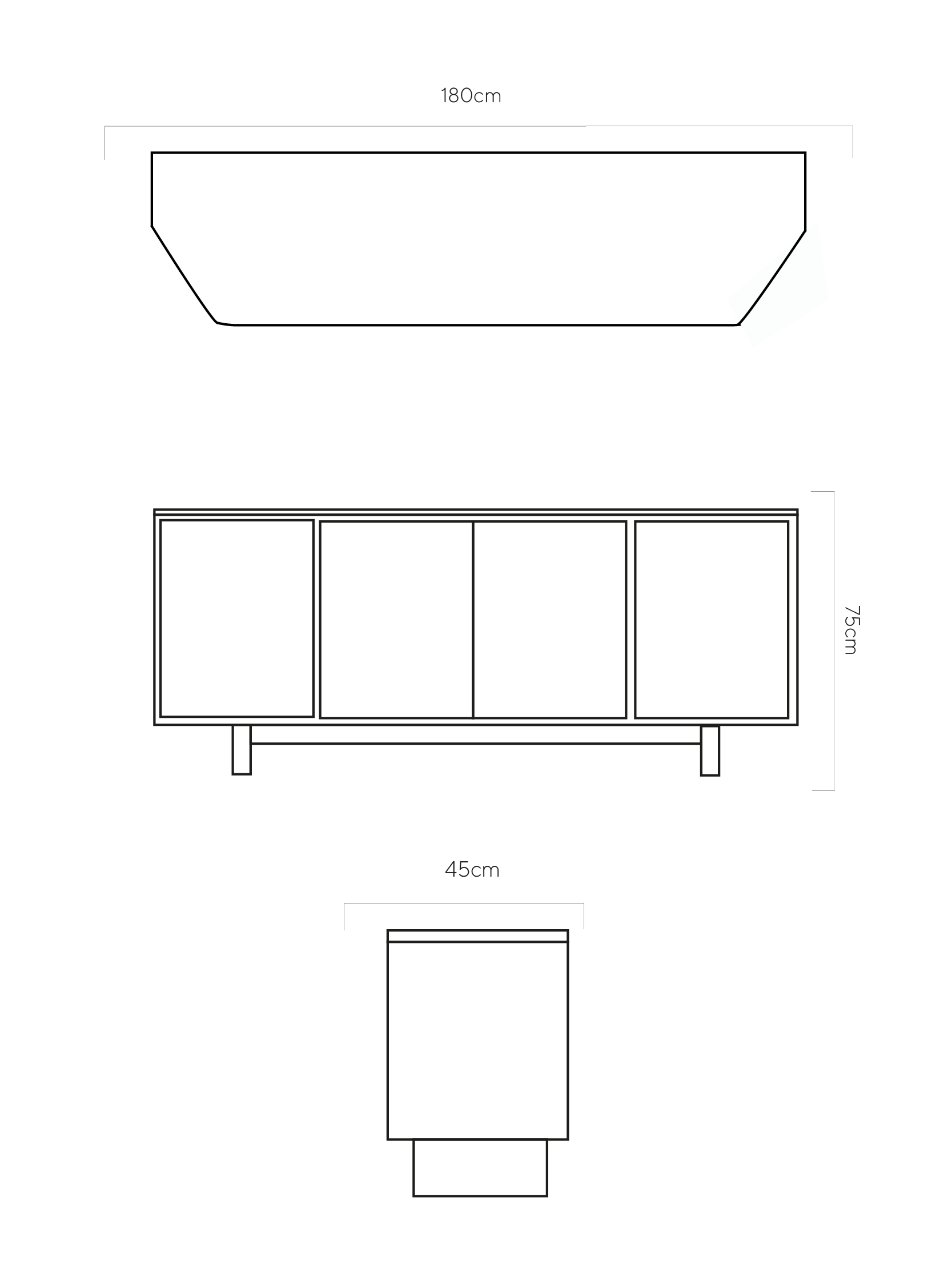 El aparador Valencia está fabricado en madera de kiri, se destaca por su diseño moderno, minimalista y elegante. Su acabado en negro profundo realza la veta natural de la madera y aporta un toque sofisticado a livings, comedores o espacios contemporáneos.