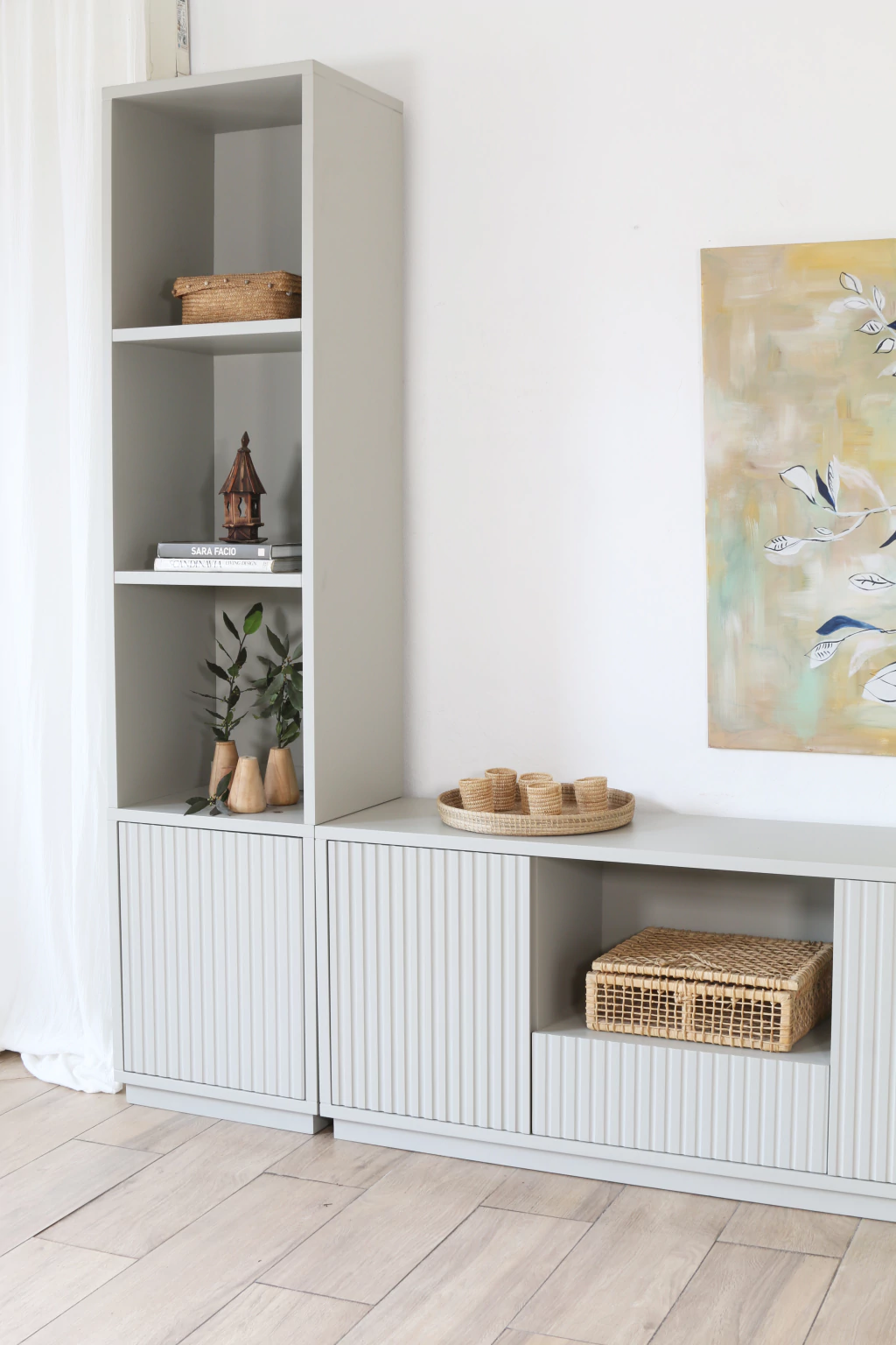 El Modular Venecia, con su diseño minimalista y funcionalidad, está fabricado en MDF, ideal para organizar y exhibir objetos. Su frente ranurado le confiere textura y elegancia, facilitando su combinación con diversos estilos de decoración.
