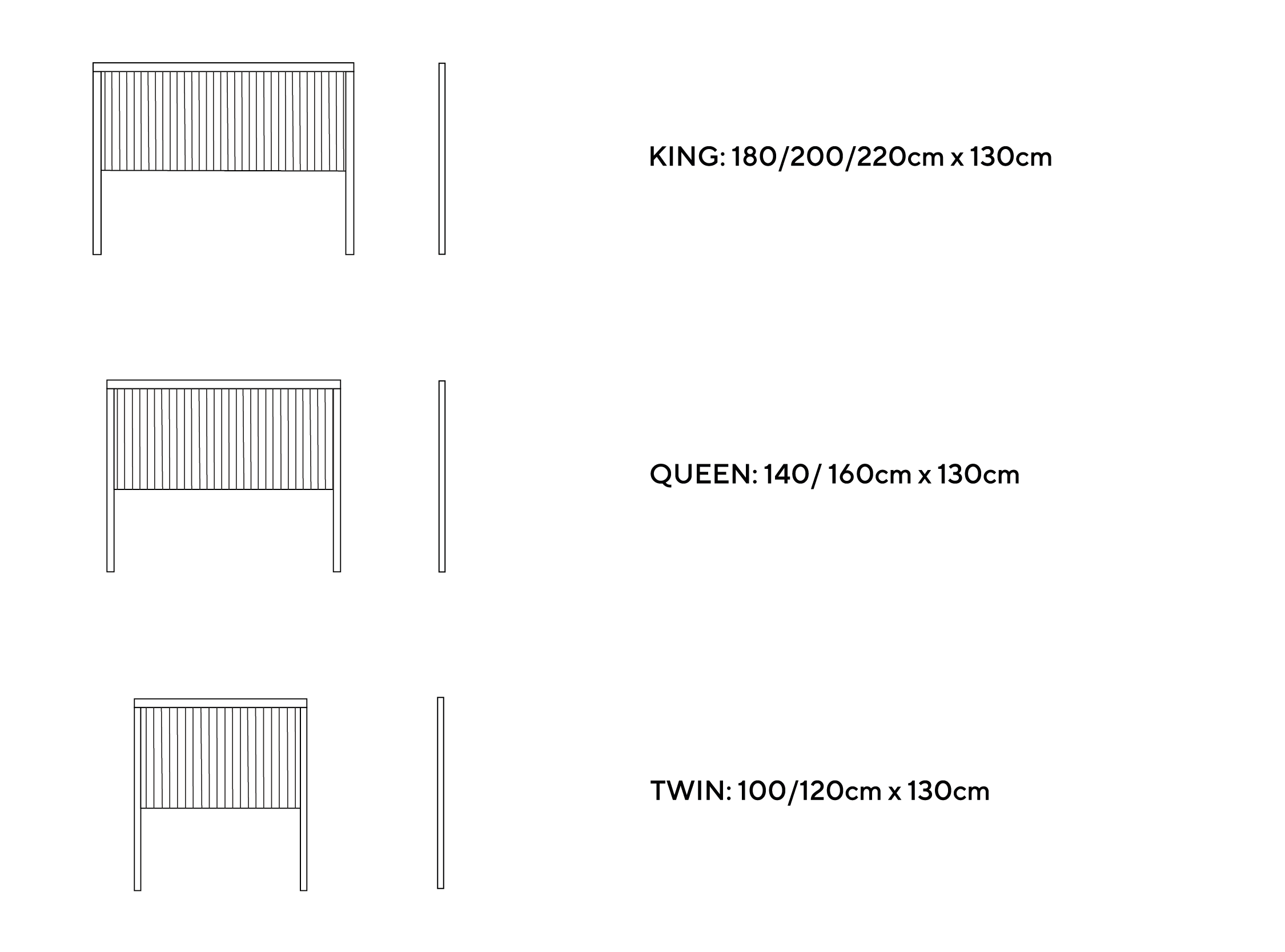 KING: 180cm/200cm/220cm x 130cm