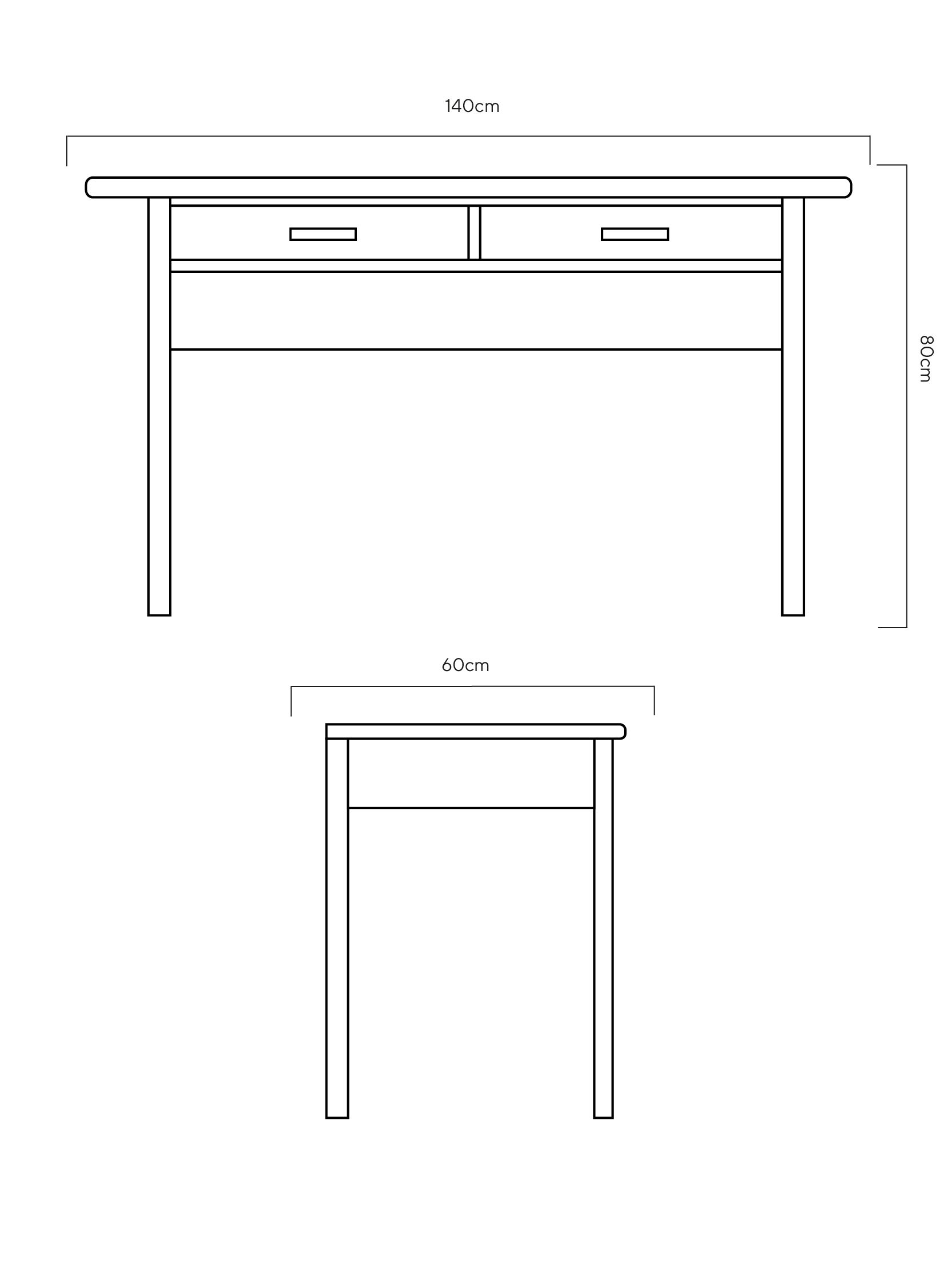 Dimensiones: 140 cm x 60 cm x 80 cm