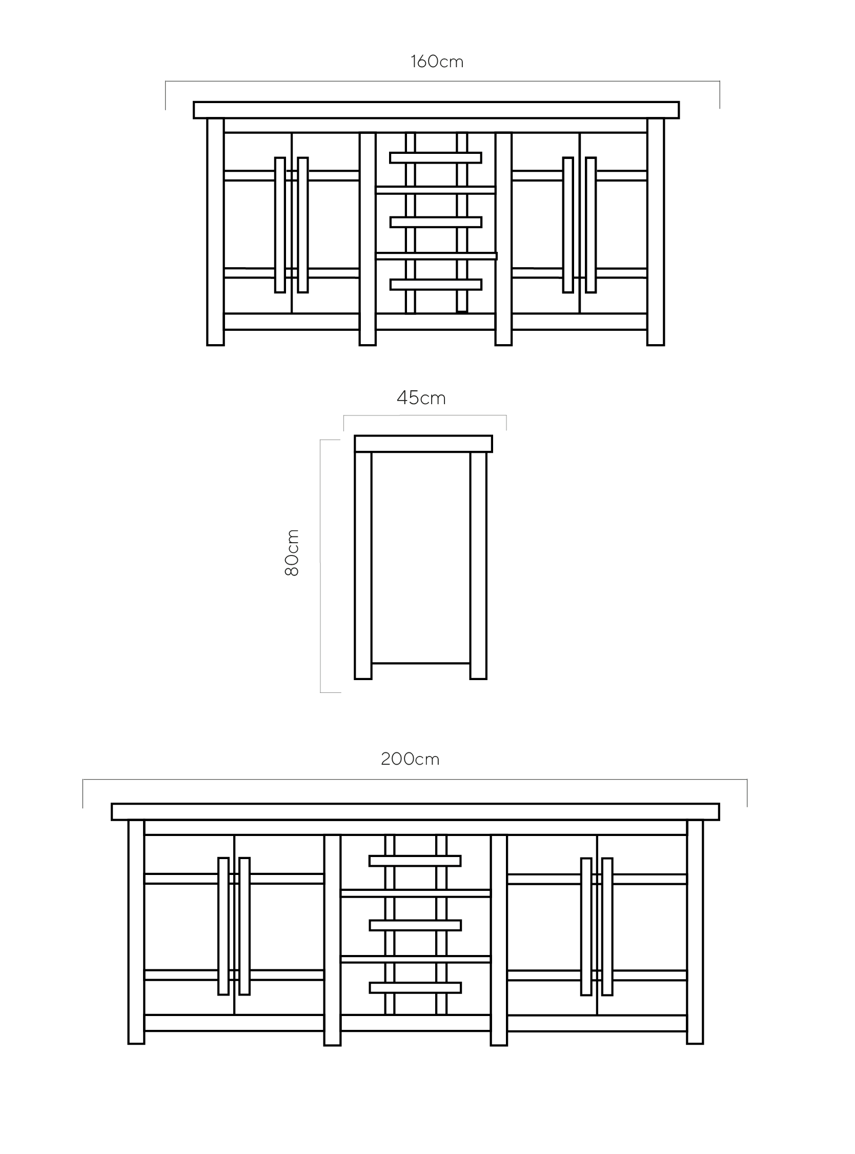 200 cm x 45 cm x 80 cm