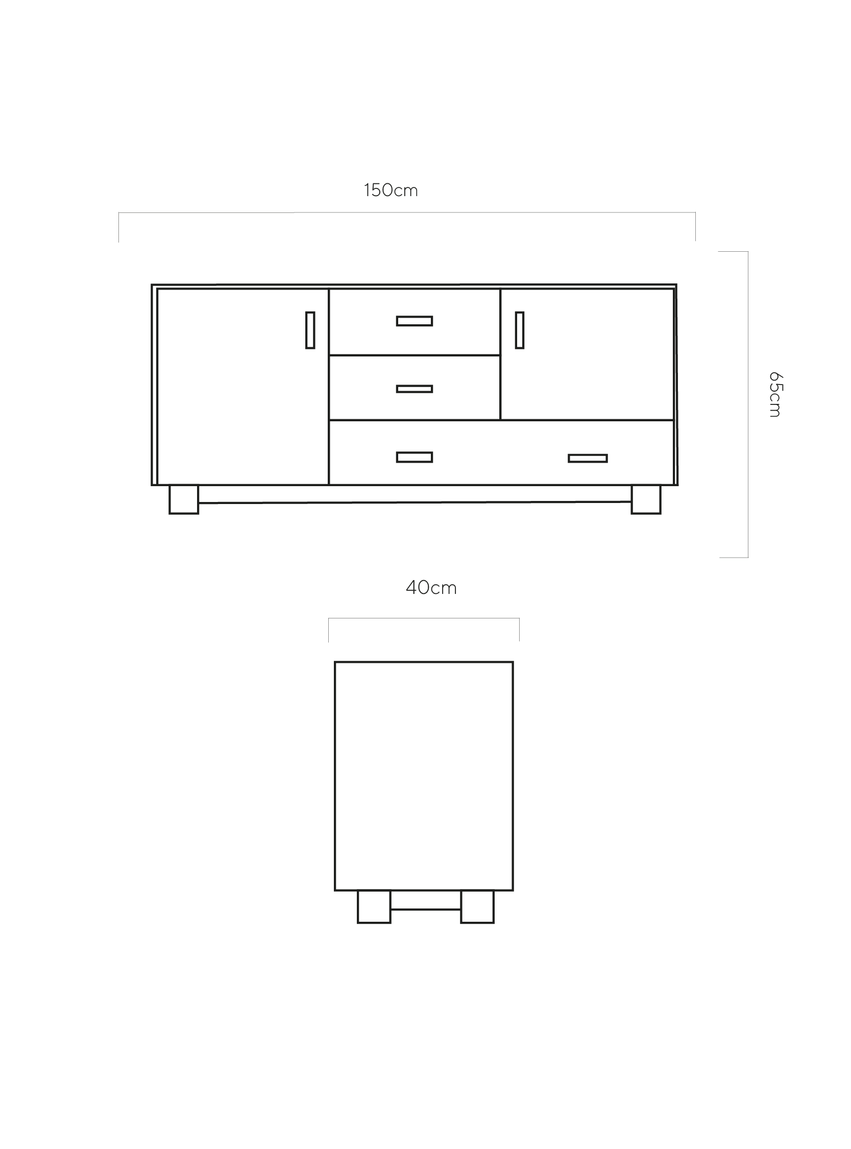 Dimensiones: 150 cm x 40 cm x 65 cm